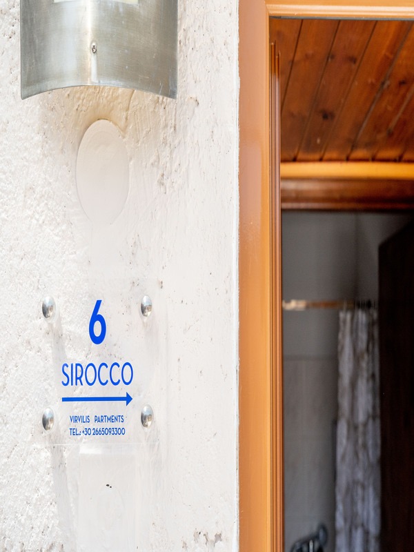 To δίκλινο 6 SIROCCO, είναι κατάλληλο για ζευγάρια. Προσφέρει για εσάς όλες τις απαραίτητες παροχές και διευκολύνσεις για ονειρικές διακοπές, όπως είναι ο κλιματισμός, δωρεάν Wi Fi με πολύ υψηλές ταχύτητες, επίπεδη τηλεόραση, κεραμικές εστίες, φούρνο, ψυγείο με κατάψυξη, κλπ. Από την μπαλκονόπορτα του στούντιο δίνεται πρόσβαση στη βεράντα με θέα τη θάλασσα, που απέχει μόλις 20 μέτρα από το κατάλυμα και δίνει μοναδική θέα στο ονειρεμένο ηλιοβασίλεμα. Απολαύστε το πρωινό σας ή το δείπνο με ένα κρασί ή ένα δροσιστικό ποτό στον όμορφο χώρο που έχουμε επιμεληθεί για εσάς. Εκτός από τη διαμονή, σίγουρα θα απολαύσετε και το μπάνιο σας σε μία από τις τροπικές παραλίες των Συβότων. Τα Virvilis Apartments βρίσκονται σε απόσταση, 200 μέτρων δηλ., λίγων μόλις λεπτών με τα πόδια, από την παραλία «Γαλλικός» που είναι και η κοντινότερη, όπως επίσης και σε πολλές από τις πανέμορφες εξωτικές παραλίες των Συβότων. Αργά το απόγευμα μπορείτε να κάνετε τη βόλτα σας και να απολαύσετε καφέ και φαγητό ή ποτό στα δεκάδες καταστήματα που βρίσκονται γύρω από τα Virvilis Apartments