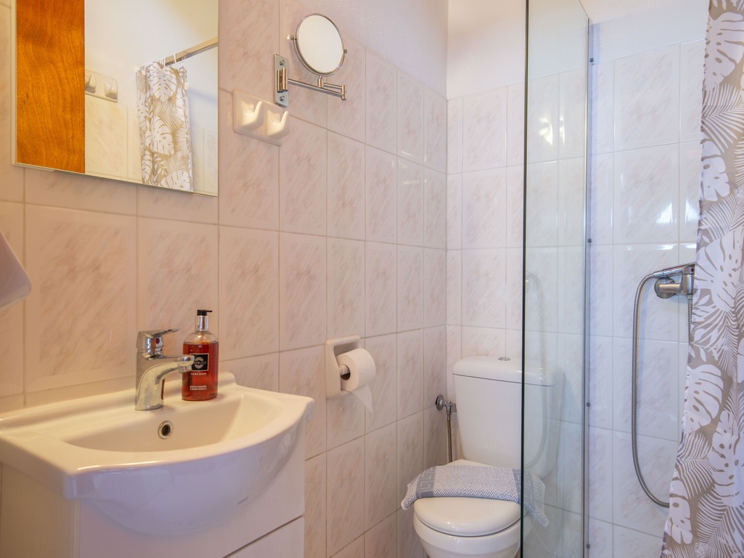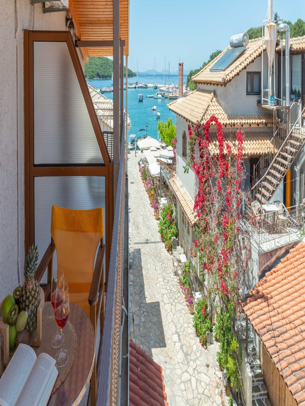 To δίκλινο 6 SIROCCO βρίσκεται στο δεύτερο όροφο του καταλύματος και προσφέρει όλες τις ανέσεις για τη διαμονή σας. Είναι συνολικού εμβαδού 16 m2 έχει απεριόριστη θέα θάλασσα στο λιμανάκι και το Ιόνιο και αποτελείται από τους εξής χώρους.